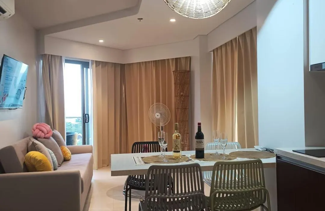 Die Zimmer im Tambuli Beach Ocean View Condo verfügen über einen Balkon und einen Essbereich sowie eine Klimaanlage für Ihren Komfort. In Badezimmern findet man ein Bidet, eine getrennte Toilette und eine Dusche.